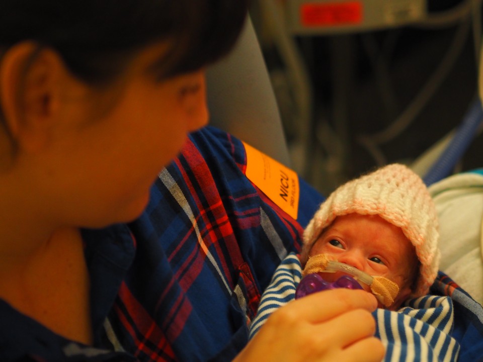 As soon as she was out of her incubator and in her mother’s arms, Kinley’s heart rate dropped back down to the low 180s.